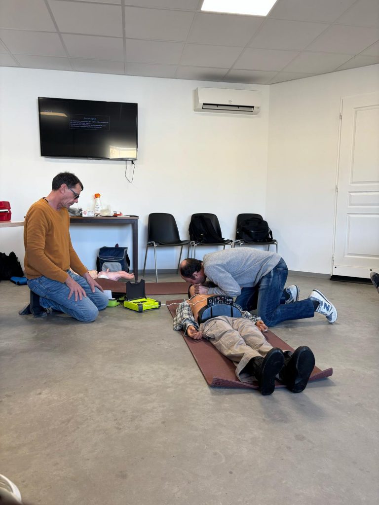 - Matériel spécifique à l’apprentissage du SST : Mannequins de réanimation adulte, enfant, nourrisson, défibrillateur, plan d’intervention, veste d’entraînement à la technique de Heimlich, maquette LVA.